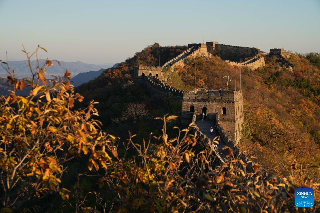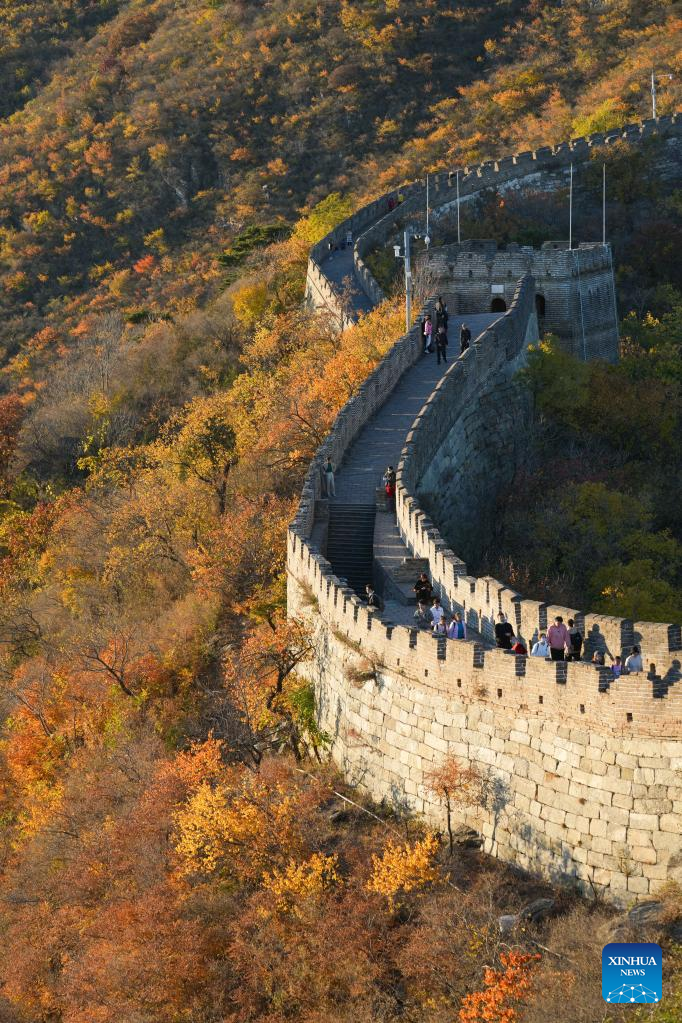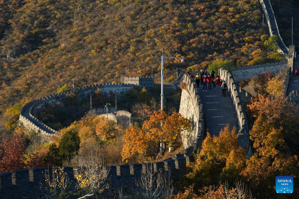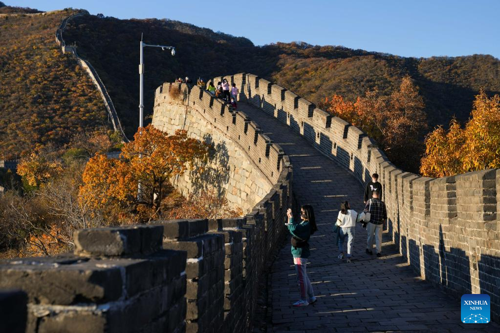 Tourists visit the Mutianyu section of the Great Wall in Beijing, capital of China, Oct. 22, 2022. (Xinhua/Ju Huanzong)