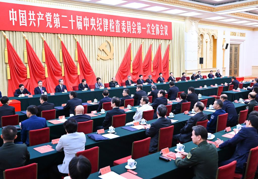 The Central Commission for Discipline Inspection (CCDI) of the Communist Party of China (CPC) elected at the 20th CPC National Congress holds its first plenary session in Beijing, capital of China, Oct. 23, 2022. (Xinhua/Zhang Ling)