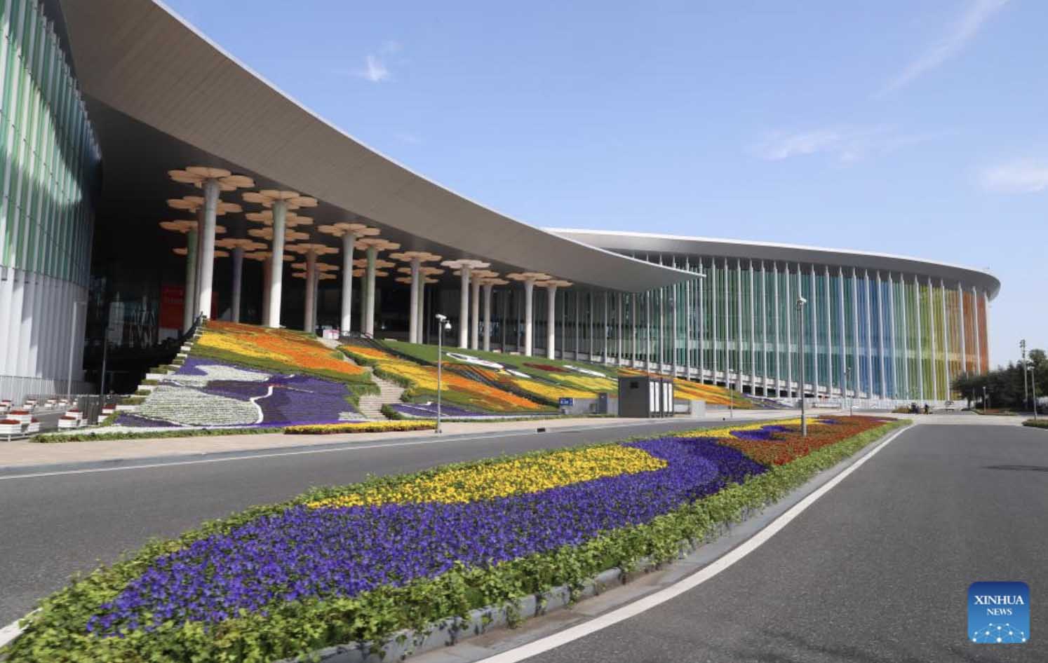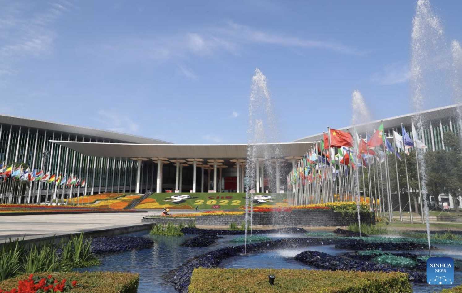 The south square of the National Exhibition and Convention Center (Shanghai), the main venue for the upcoming fifth China International Import Expo (CIIE), is pictured in east China's Shanghai, Oct. 24, 2022. The CIIE, the world's first dedicated import exhibition, will take place in Shanghai on Nov. 5-10. (Xinhua/Fang Zhe)