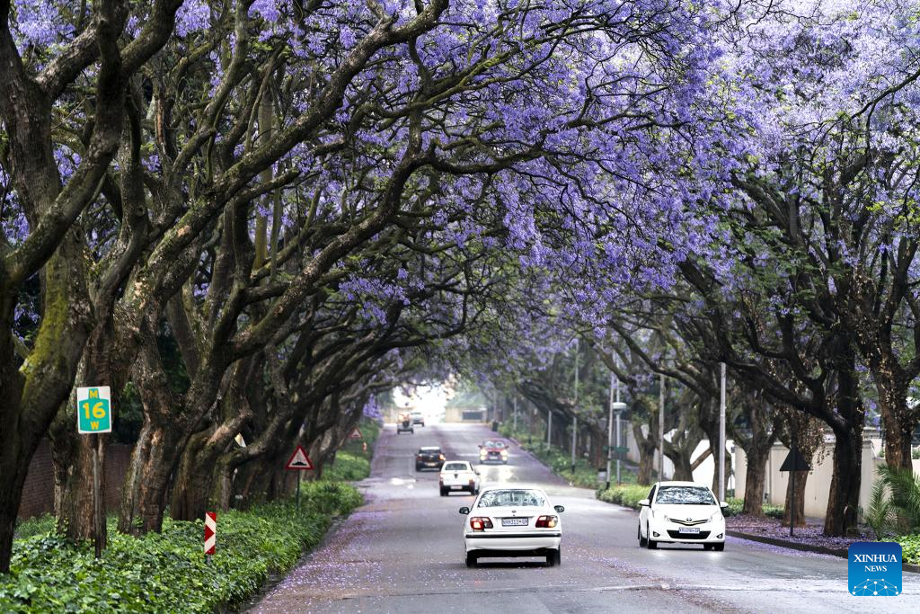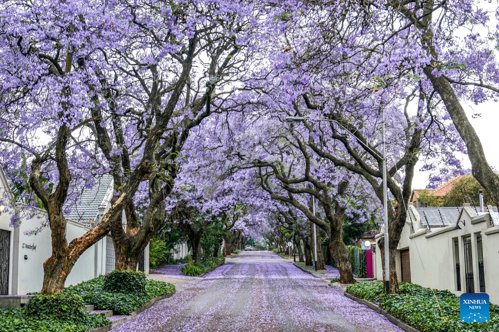 This photo taken on Oct. 24, 2022 shows jacaranda trees in full bloom in Johannesburg, South Africa. (Photo by Shiraaz Mohamed/Xinhua)
