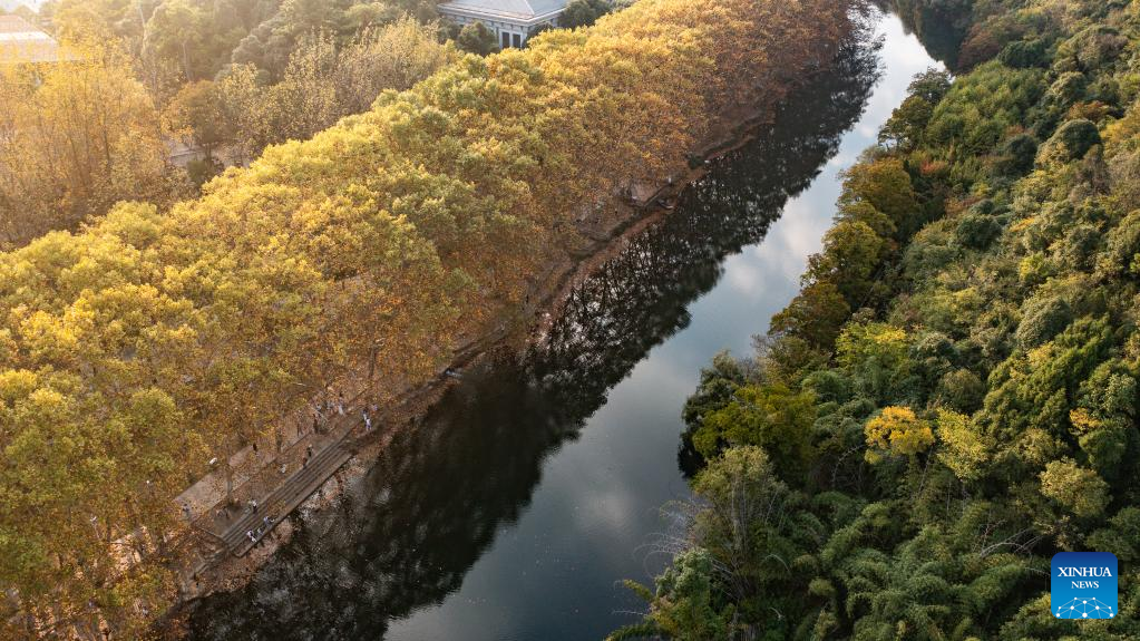 Tourists enjoy the autumn scenery of Huaxi national city wetland park in Guiyang, capital of southwest China's Guizhou Province, Oct. 25, 2022. (Xinhua/Tao Liang)