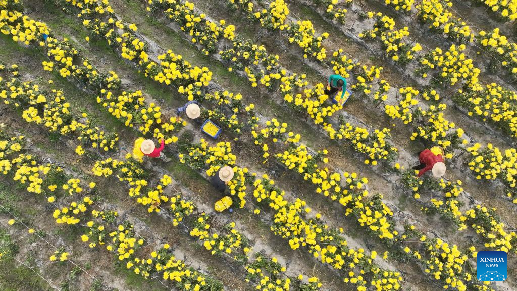 Chrysanthemums enter harvest season in Yuelin Village, Hunan