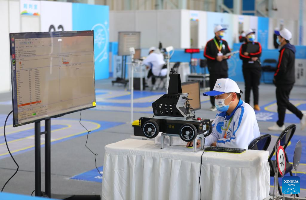 A contestant participates in the contest of artificial intelligence training during the 1st Vocational Skills Competition of Liaoning Province in Shenyang, northeast China's Liaoning Province, Oct. 27, 2022.