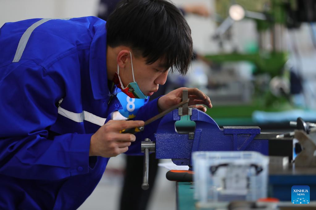 A contestant participates in the contest of benchwork during the 1st Vocational Skills Competition of Liaoning Province in Shenyang, northeast China's Liaoning Province, Oct. 27, 2022.