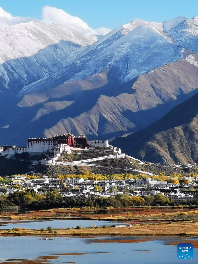 This photo taken on Oct. 25, 2022 shows the autumn view of Potala Palace in Lhasa, southwest China's Tibet Autonomous Region. (Xinhua/Jiang Fan)