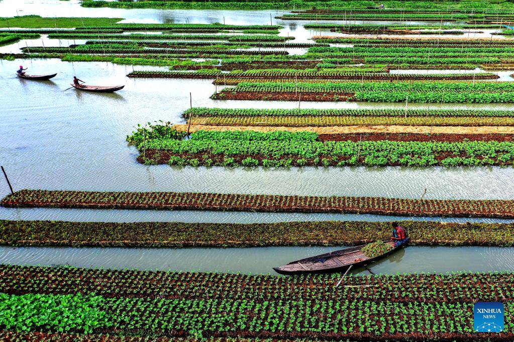 The aerial photo taken on Oct. 25, 2022 shows floating vegetable beds in Barisal, Bangladesh. (Xinhua)