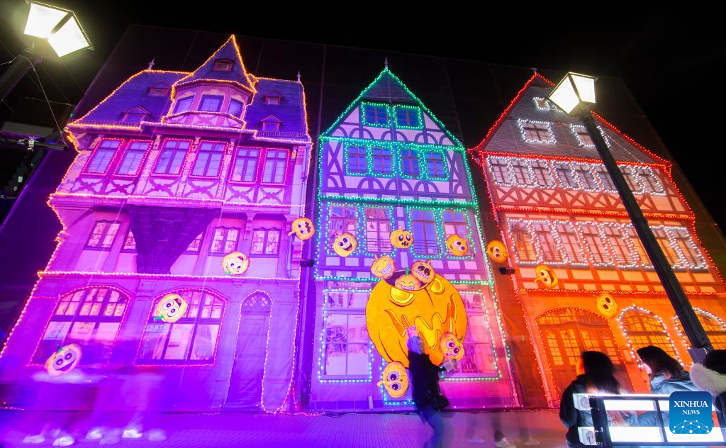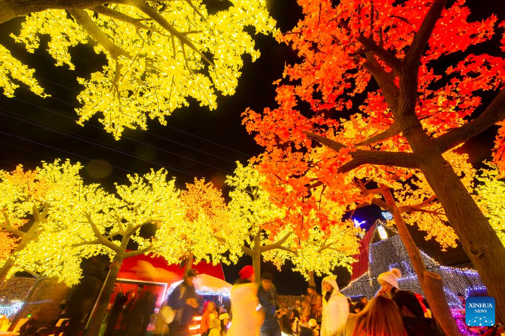 Light installations are seen during the Illumi: A Dazzling World of Lights show in Mississauga, Ontario, Canada, on Oct. 29, 2022. The light show will last until Jan. 8, 2023. (Photo by Zou Zheng/Xinhua)