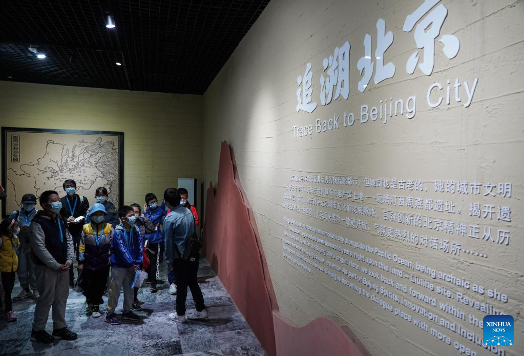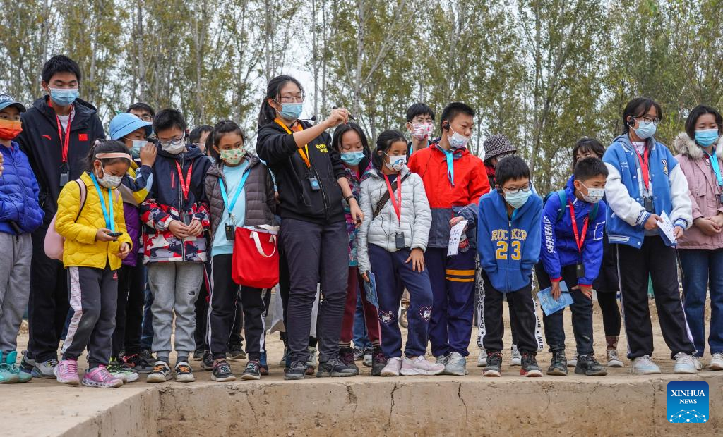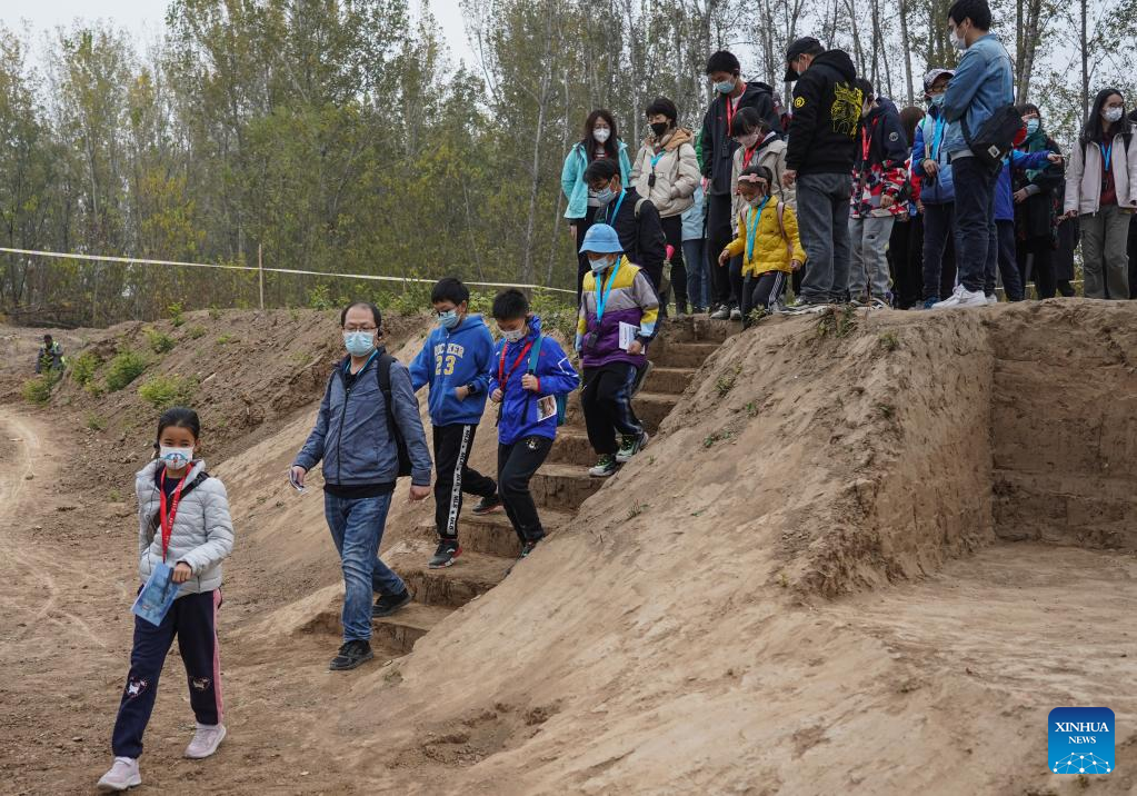 Children visit the Liulihe relic site in Beijing, capital of China, Oct. 30, 2022. Liulihe relic site in Fangshan District of Beijing is believed to be the capital of the Yan kingdom during the Western Zhou Dynasty (1046-771 BC). As part of this year's Beijing Public Archaeology Season, a tour consisting of 20 families is organized to visit the Yan Capital Site Museum of Western Zhou Dynasty and Liulihe relic site on Sunday. (Xinhua/Chen Zhonghao)