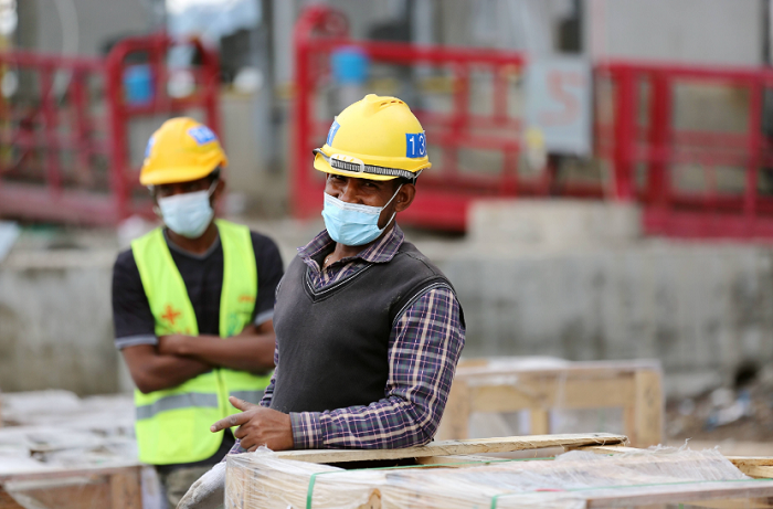 Laborers work at the construction site of the Headquarters Building Phase I Project of the Africa Centers for Disease Control and Prevention (Africa CDC) in Addis Ababa, Ethiopia, on Aug. 16, 2022. (Xinhua/Wang Ping)