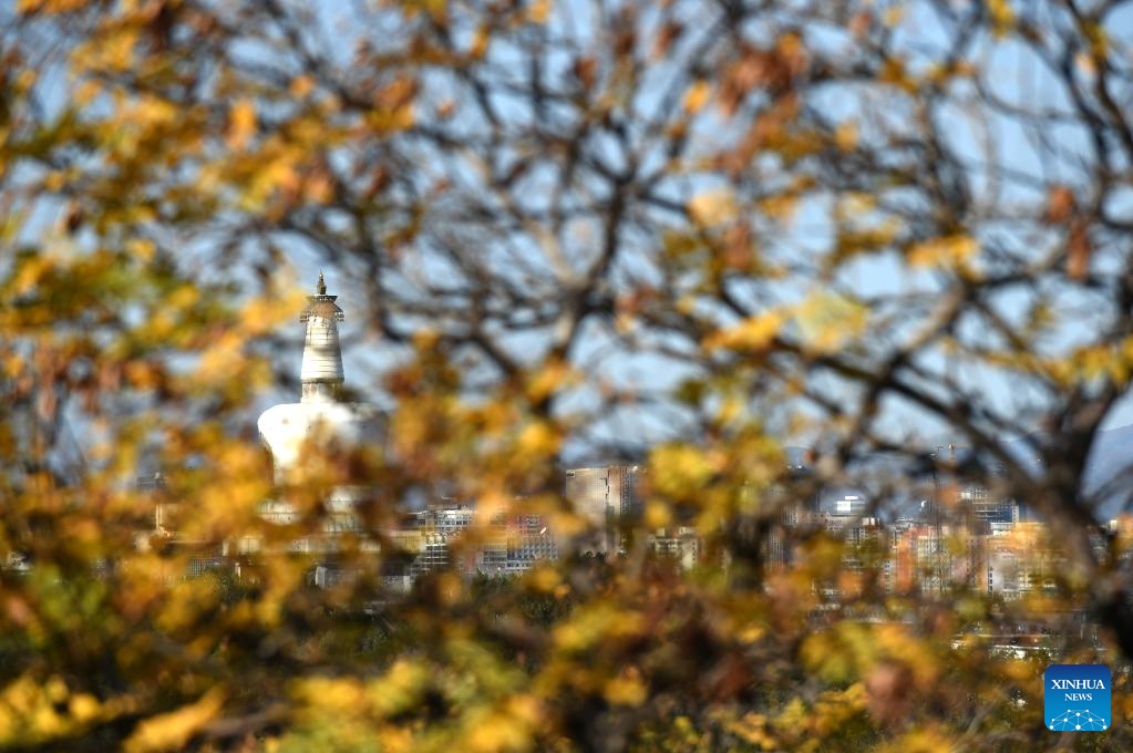 This photo taken on Nov. 1, 2022 shows the autumn scenery of Beihai Park in Beijing, capital of China. (Xinhua/Luo Xiaoguang)