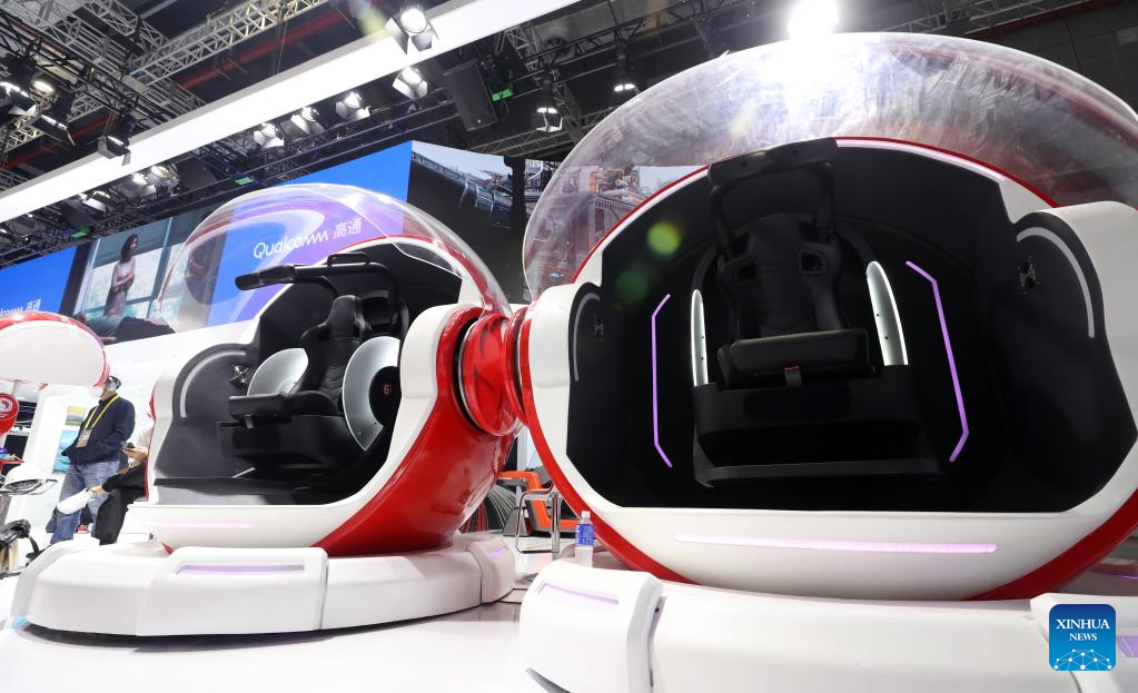 This photo taken on Nov. 2, 2022 shows gaming capsules of U.S. company Qualcomm to be displayed in the upcoming fifth China International Import Expo (CIIE) in east China's Shanghai.