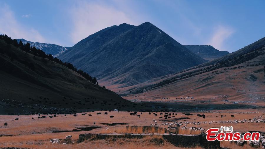 Sheep graze on grassland in Dulan County, Haixi Mongolian-Tibetan autonomous prefecture, northwest China's Qinghai Province, Nov. 2, 2022. (Photo: China News Service/Xian Gong)