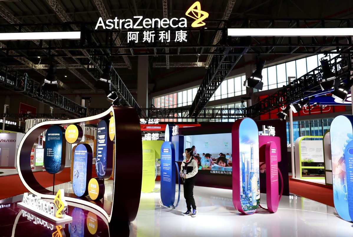 A photo of AstraZeneca booth taken at the venue for the 5th CIIE in Shanghai, Nov 4, 2022. [Photo by Zhang Wei/China Daily]