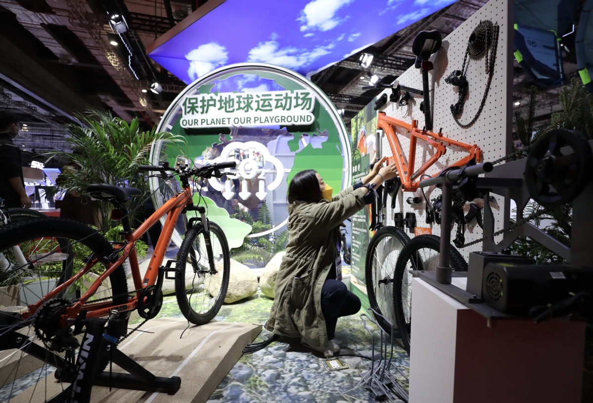 A staff member sets up the booth at the venue for the 5th CIIE in Shanghai, Nov 4, 2022. [Photo by Zhang Wei/China Daily]