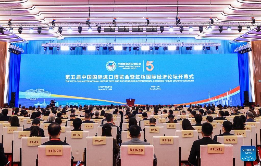 The opening ceremony of the fifth China International Import Expo is held at the National Exhibition and Convention Center (Shanghai) in east China's Shanghai on Nov. 4, 2022. (Xinhua/Li Jing)