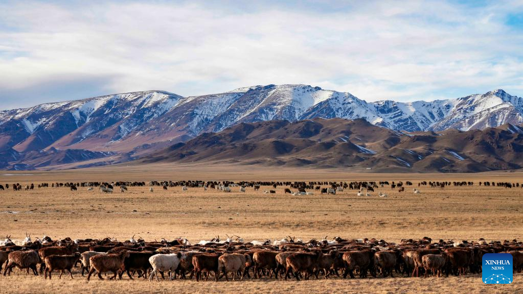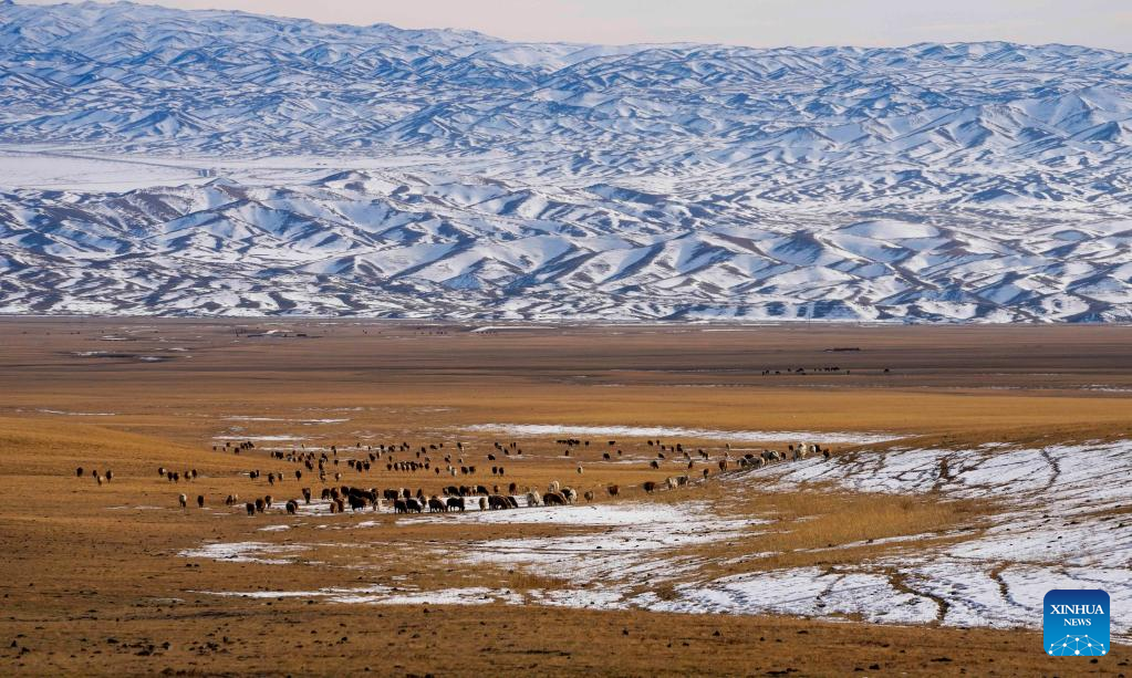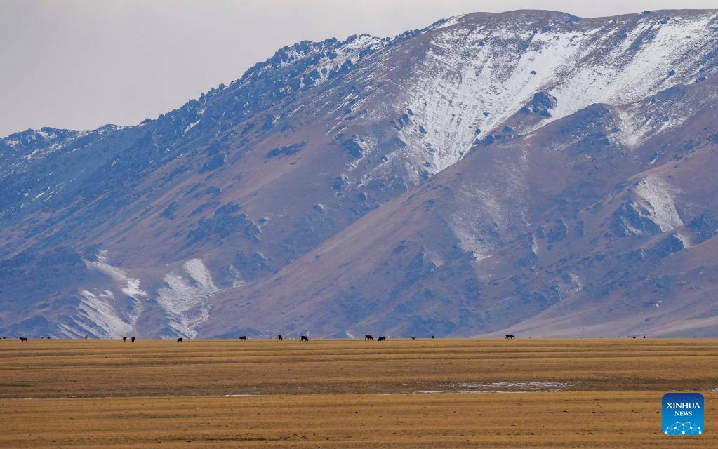 This photo taken on Nov. 4, 2022 shows a view of a winter pasture in the Barlik Mountain area in Yumin County, northwest China's Xinjiang Uygur Autonomous Region.