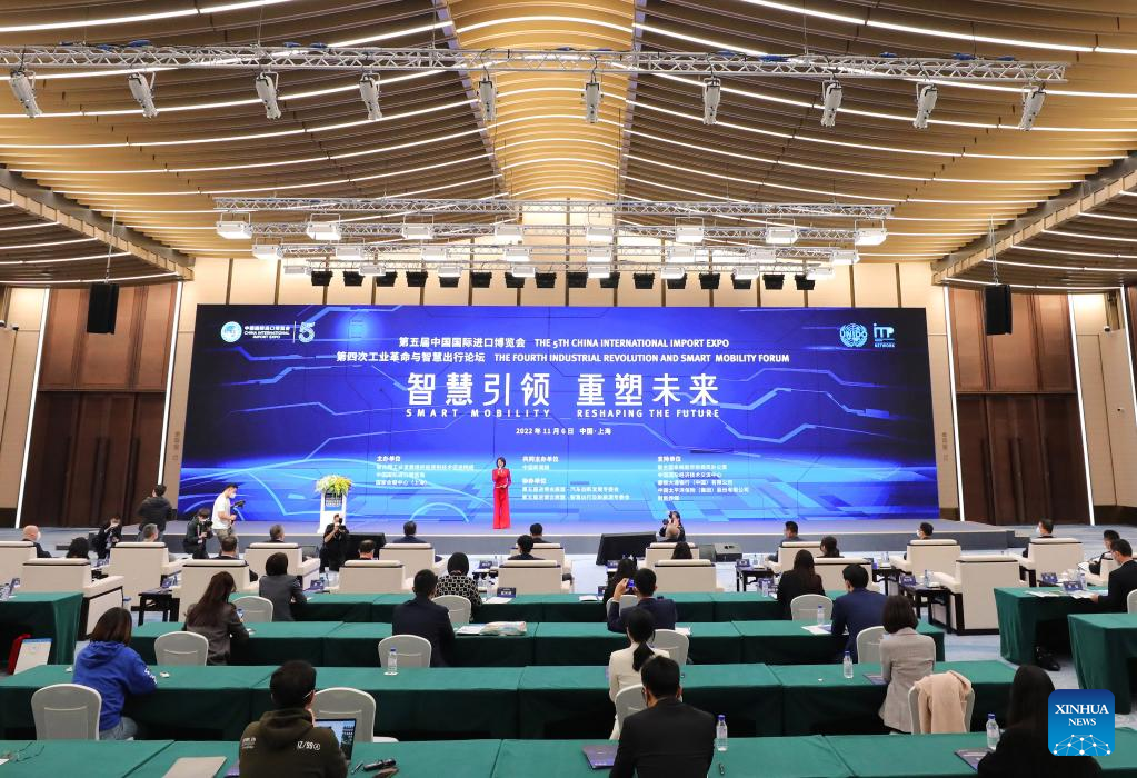 The Fourth Industrial Revolution and Smart Mobility Forum is held during the fifth China International Import Expo (CIIE) in east China's Shanghai, Nov. 6, 2022. (Xinhua/Fang Zhe)