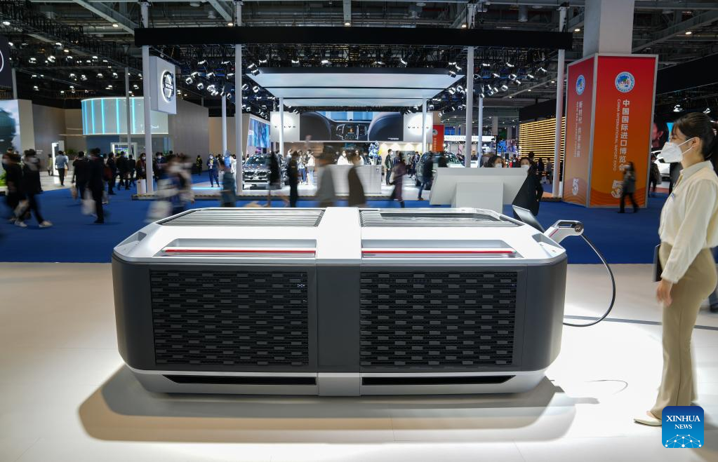 The fifth China International Import Expo (CIIE) is scheduled on Nov. 5-10 in China's economic hub Shanghai. Many green, low-carbon vehicles are showcased during the expo. (Xinhua/Fang Zhe)