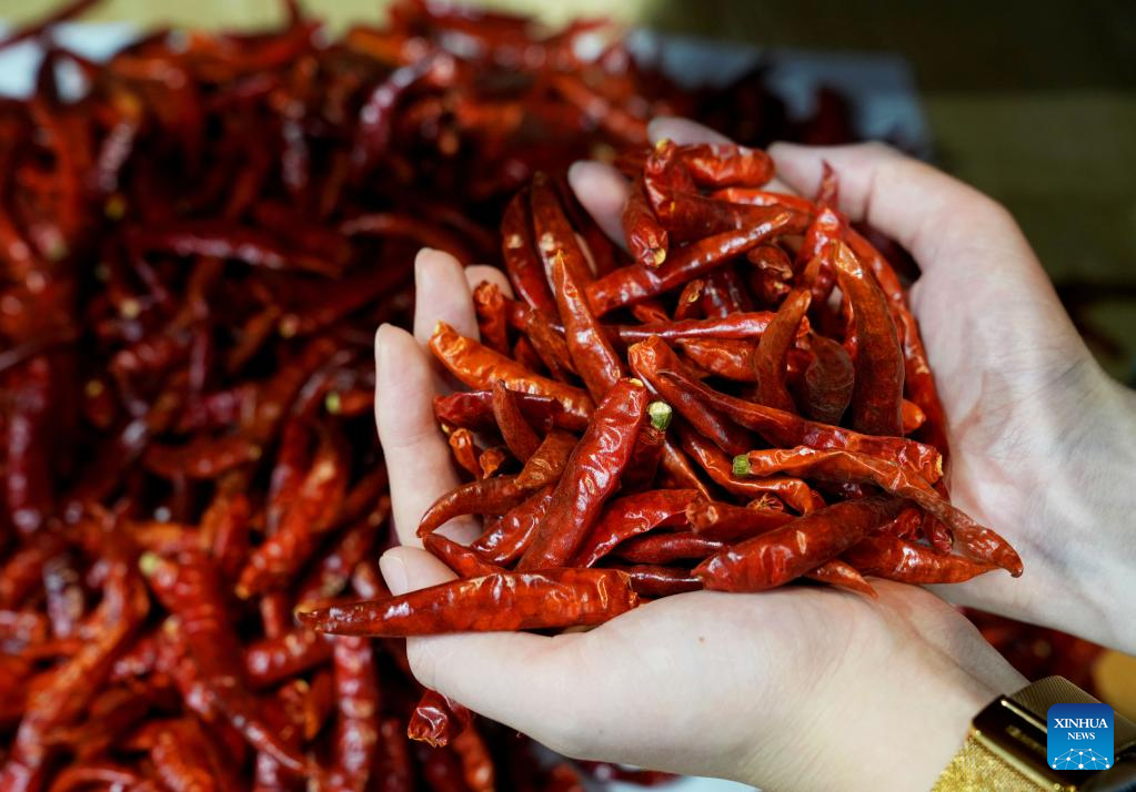 This photo taken on Nov. 7, 2022 shows hot peppers from Rwanda displayed at the food and agricultural products exhibition area of the fifth China International Import Expo (CIIE) in east China's Shanghai. (Xinhua/Liu Ying)