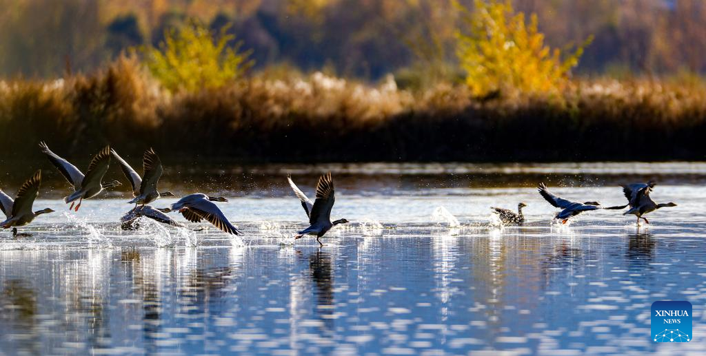 This photo taken on Nov. 5, 2022 shows the Lhalu wetland in Lhasa, southwest China's Tibet Autonomous Region. (Xinhua/Lyu Qiuping)