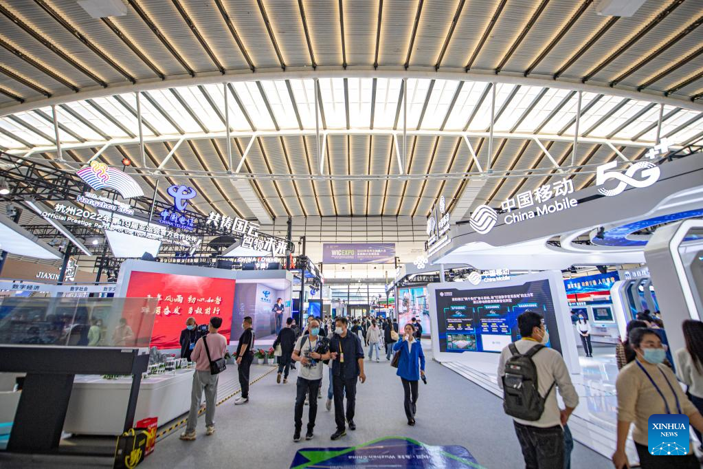 People visit the Light of Internet Expo in Wuzhen, east China's Zhejiang Province, Nov. 8, 2022. The expo kicked off here on Tuesday. (Xinhua/Jiang Han)