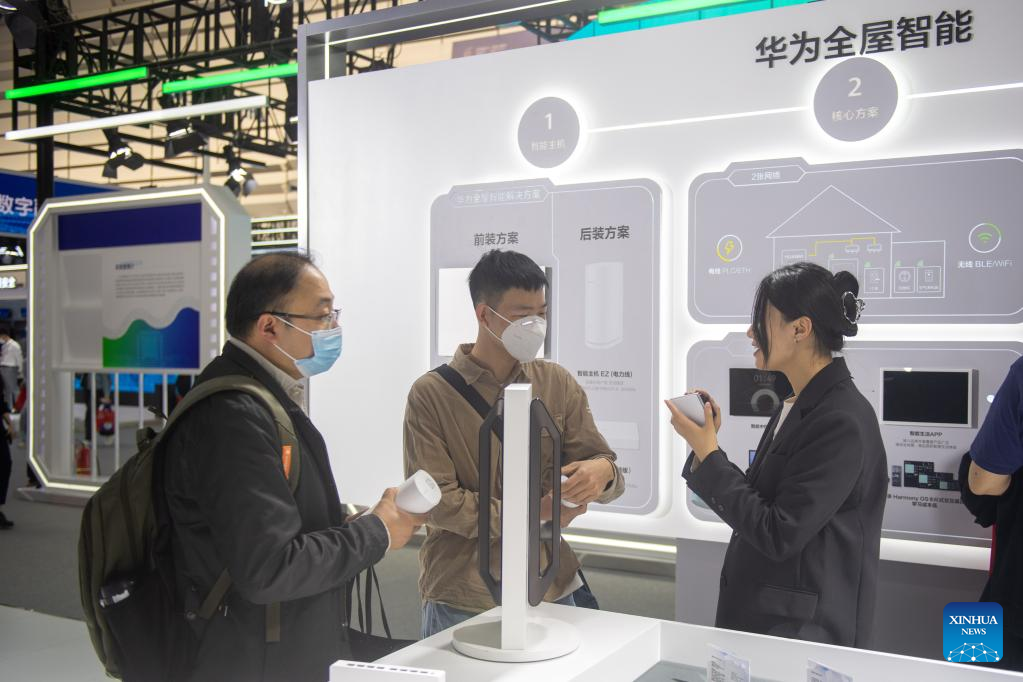 People visit the booth of Huawei during the Light of Internet Expo in Wuzhen, east China's Zhejiang Province, Nov. 8, 2022. The expo kicked off here on Tuesday. (Xinhua/Jiang Han)