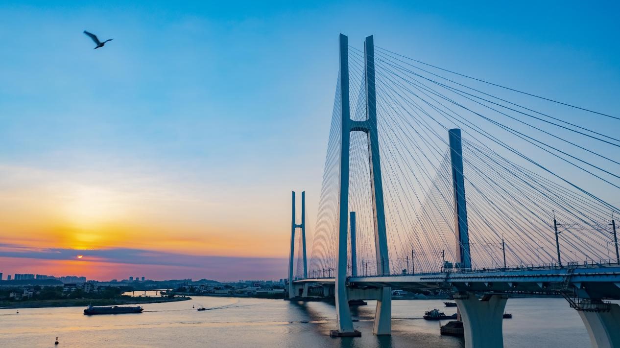 Photo taken on July 23, 2022 shows a cable-stayed bridge along the Nansha Port railway in Jiangmen, south China's Guangdong province. (People's Daily Online/Jin Wei)