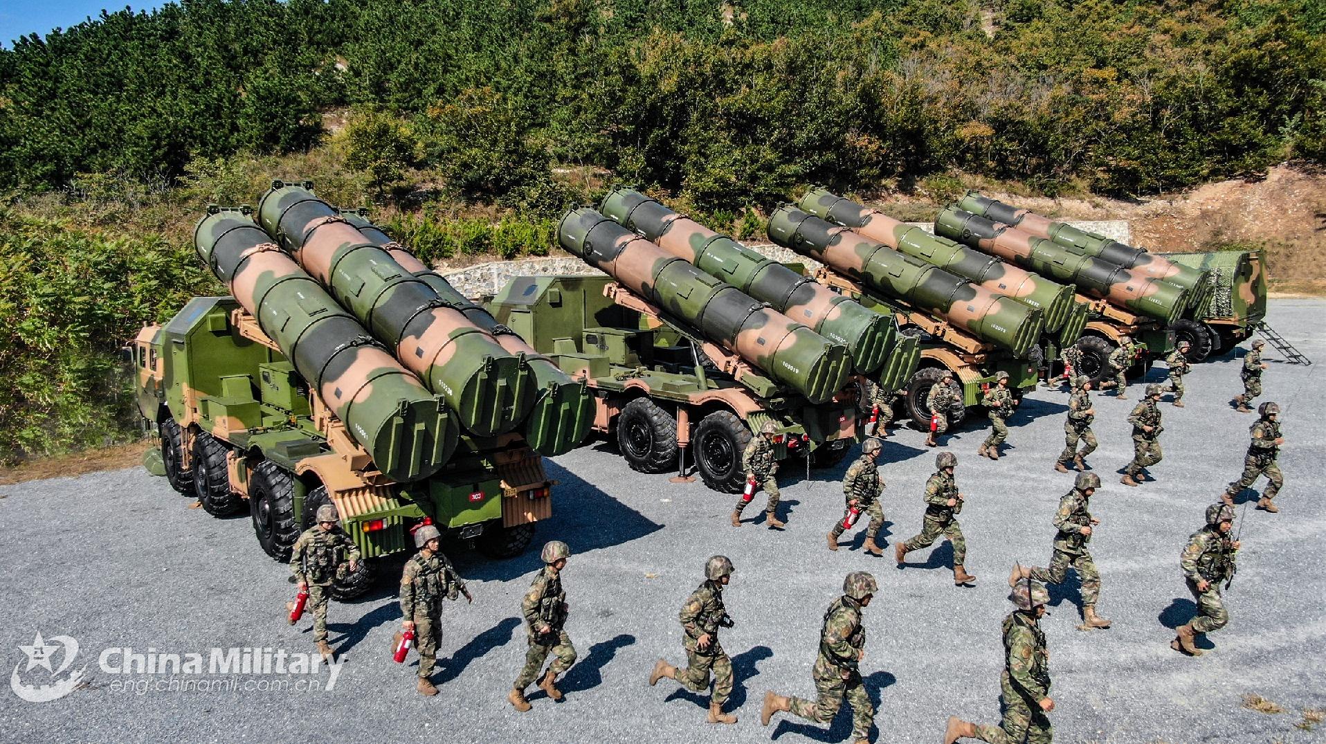 Soldiers assigned to a coastal missile regiment with the navy under the PLA Northern Theater Command set up antennae on anti-ship missile launching vehicles during a land-to-sea training exercise on October 11, 2022. (eng.chinamil.com.cn/Photo by Liu Zihao)