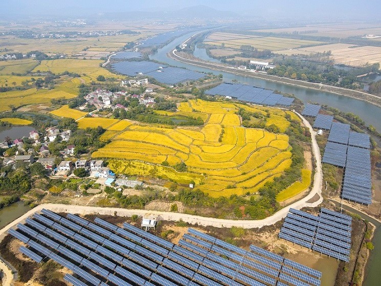 Photo taken in October 2022 shows photovoltaic panels installed in Baihu township, Lujiang county, Hefei, east China's Anhui province. (People's Daily Online/Li Hongbing)