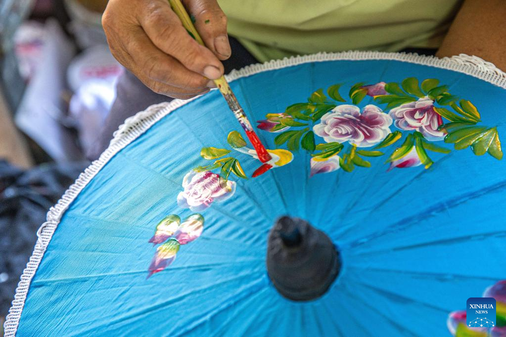 Artisans make paper umbrellas in Chiang Mai, Thailand, on Nov. 9, 2022. (Xinhua/Wang Teng)