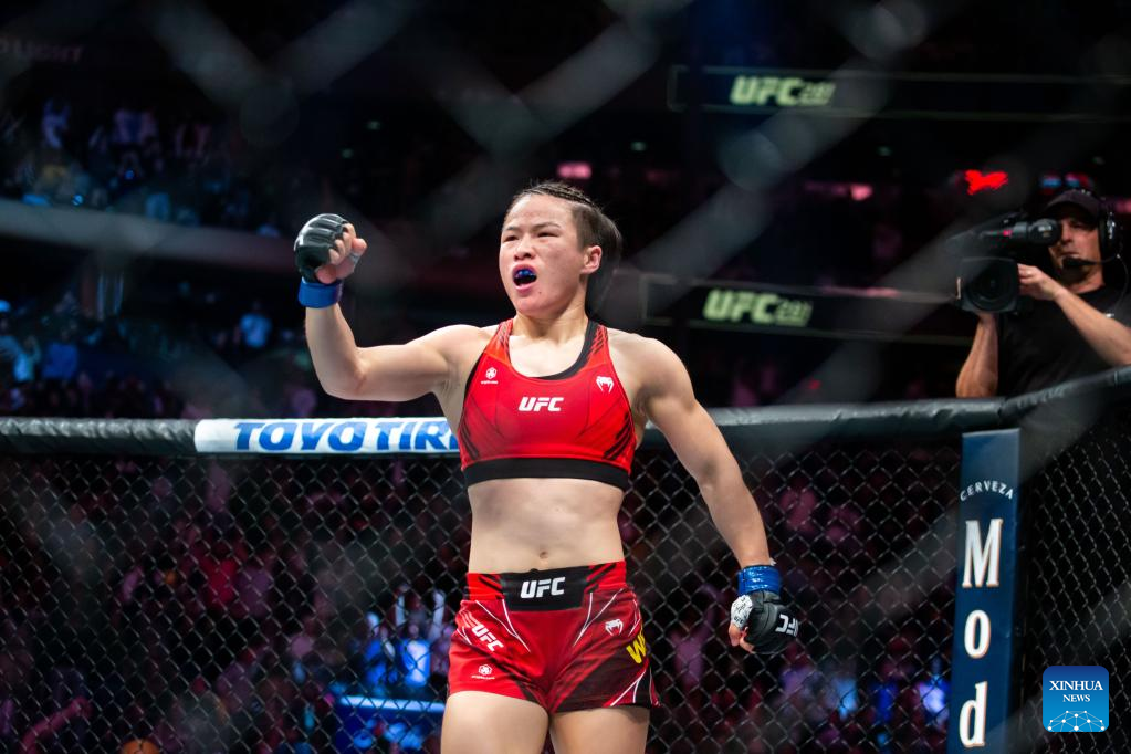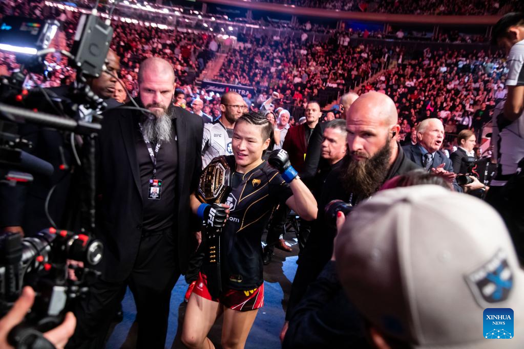 NEW YORK, Nov. 13 (Xinhua) -- In an action-packed UFC 281 card, China's Zhang Weili returned to the top of the women's strawweight division, regaining her belt against two-time title holder Carla Esparza, while in the main event, Alex Periera upset middleweight king Israel Adesanya.