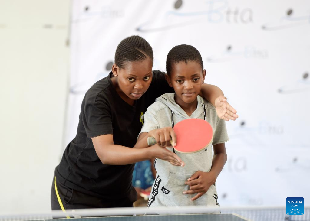 Kids play table tennis at BNYC in Gaborone, Botswana's capital city, Nov. 8, 2022. (Photo by Tshekiso Tebalo/Xinhua)