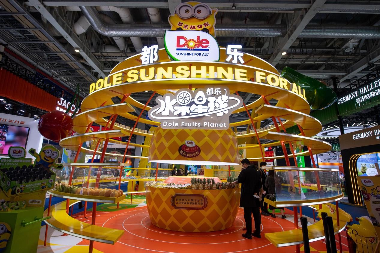People visit the exhibition booth of agricultural multinational corporation Dole at the Food and Agricultural Products section of the fifth China International Import Expo, Nov. 5, 2022. (People's Daily Online/Weng Qiyu)