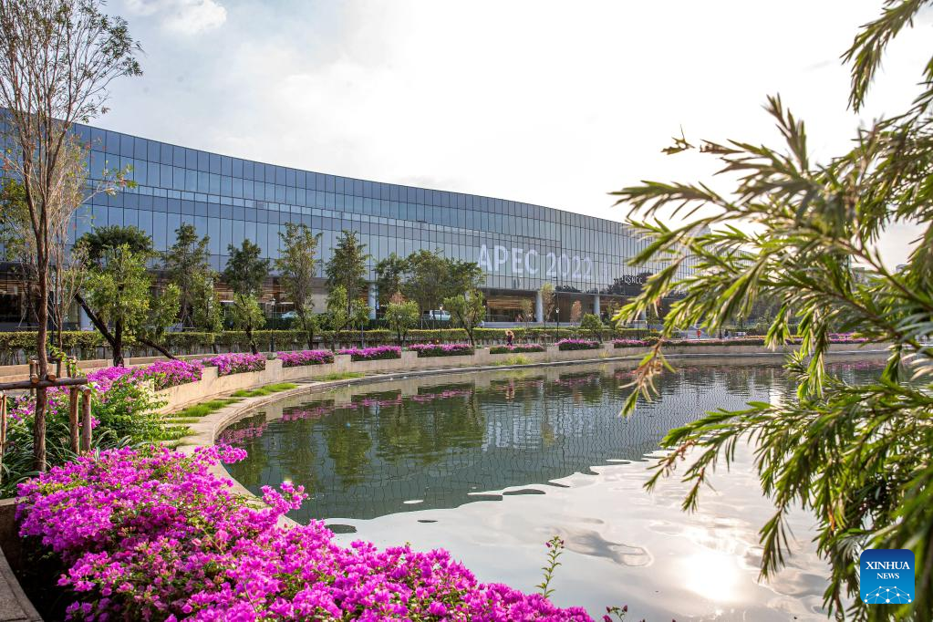 A logo of APEC 2022 is pictured on a street in Bangkok, Thailand, Nov. 16, 2022. The 29th Asia-Pacific Economic Cooperation (APEC) Economic Leaders' Meeting will be held in Bangkok, Thailand, on Nov. 18-19. (Xinhua/Wang Teng)
