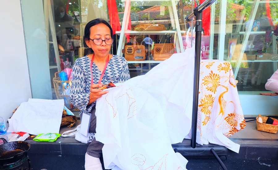 Photo taken on Nov. 15, 2022 shows Batik being made at Bali Collection in Bali, Indonesia. (People’s Daily Online/Zhong Wenxing)