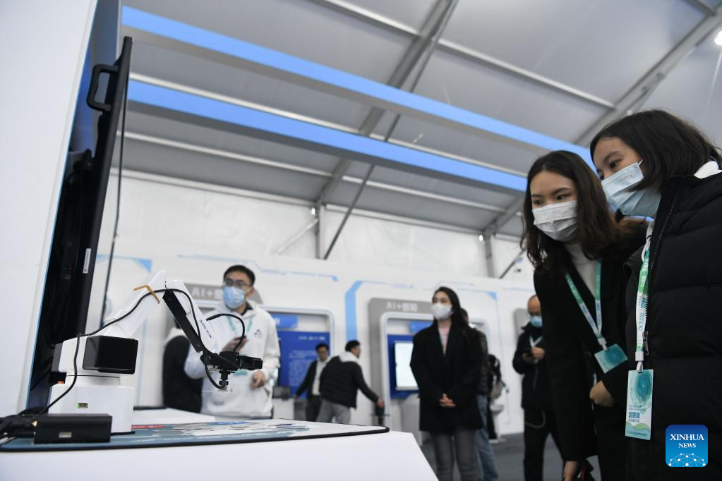 Visitors view exhibits at the 5th World Voice Expo in Hefei, east China's Anhui Province, Nov. 17, 2022. (Xinhua/Zhu Qing)