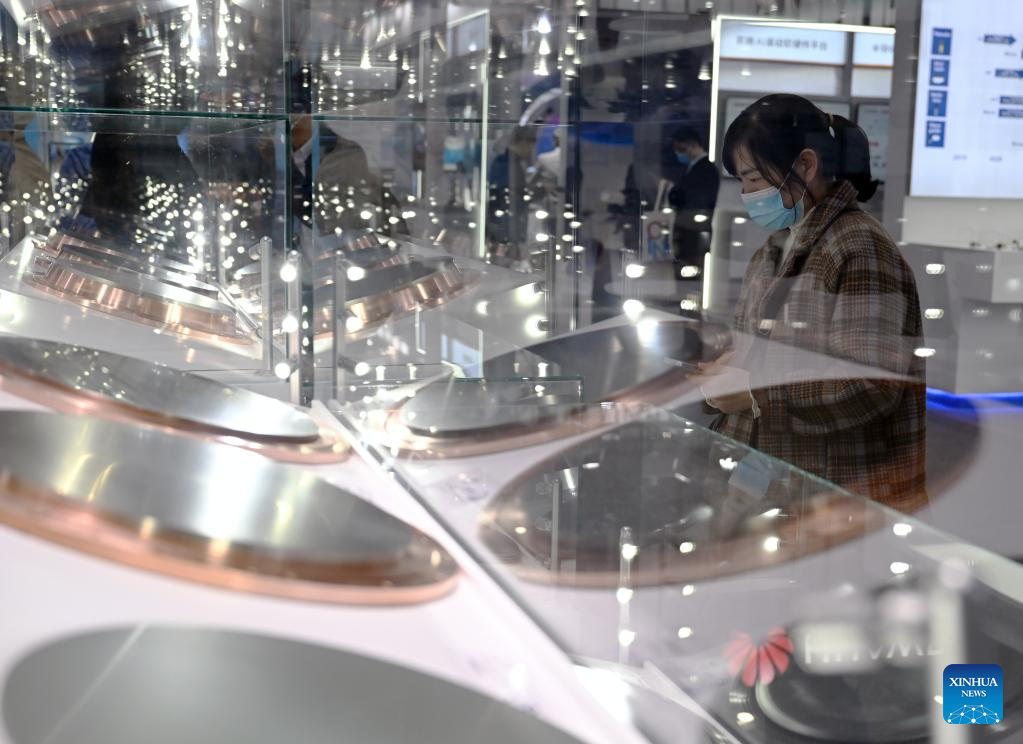Visitors view exhibits at the World Conference on Integrated Circuits 2022 in Hefei, east China's Anhui Province, Nov. 17, 2022. (Xinhua/Zhou Mu)