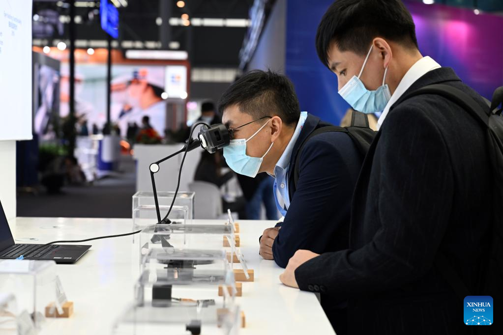 Visitors are seen at the World Conference on Integrated Circuits 2022 in Hefei, east China's Anhui Province, Nov. 17, 2022. (Xinhua/Zhou Mu)