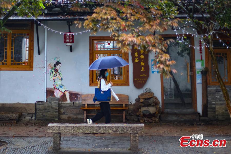 A tourist visits Tongli ancient town in Wujiang district of Suzhou, east China's Jiangsu Province, Nov. 17, 2022. (Photo: China News Service/Yang Bo)