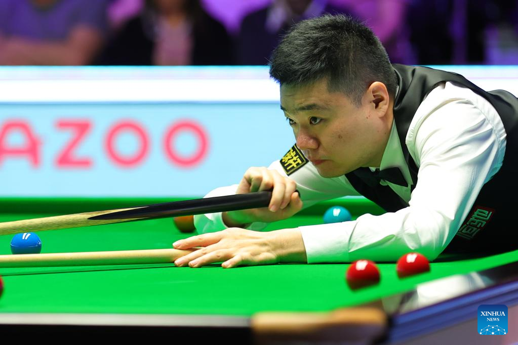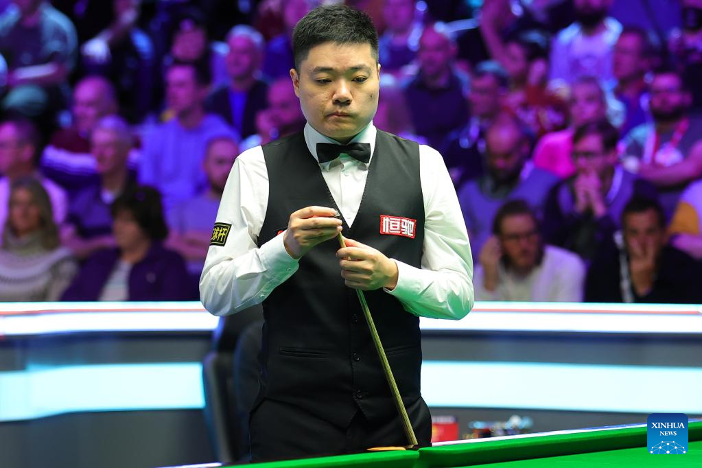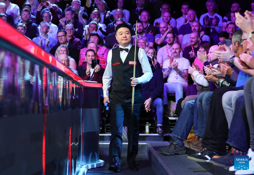 Ding Junhui of China is seen ahead of the quarter final match against Ronnie O'Sullivan of England at 2022 UK Snooker Championship in York, Britain, Nov. 18, 2022. (Photo by Zhai Zheng/Xinhua)