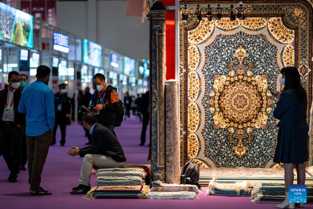 Exhibitors dressing in ethnic costumes are seen at the 6th China-South Asia Exposition in Kunming, southwest China's Yunnan Province, Nov. 19, 2022. (Xinhua/Chen Xinbo)