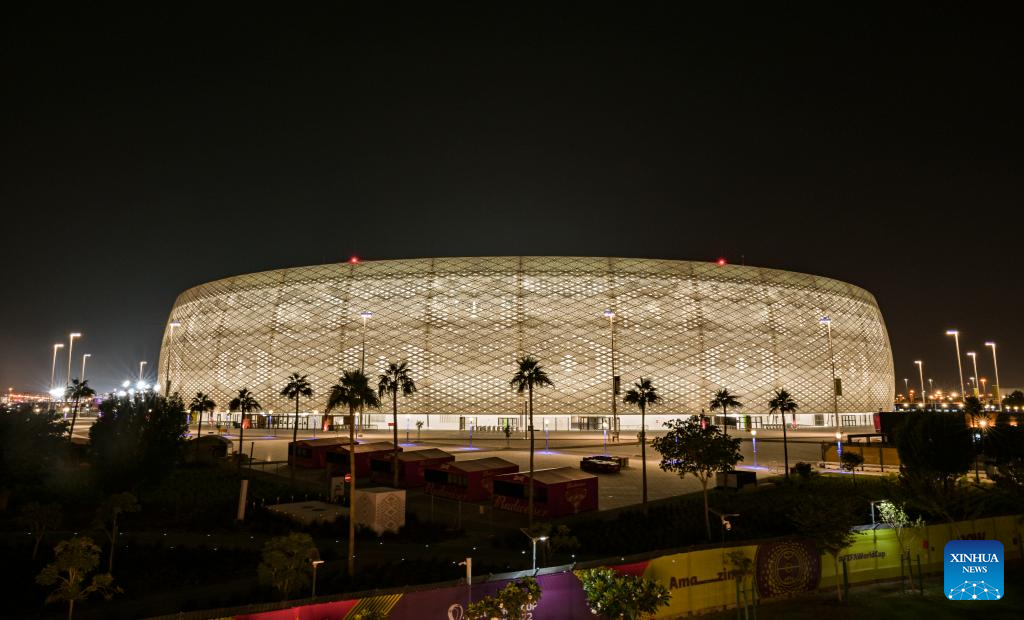 This photo taken on Nov. 17, 2022 shows a view of the Lusail stadium in Doha, Qatar. The FIFA World Cup Qatar 2022 will kick off on Nov. 20, 2022. (Xinhua/Wang Lili)