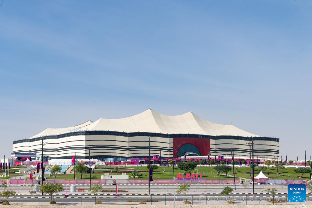 This photo taken on Nov. 18, 2022 shows a view of the Al Bayt Stadium in Doha, Qatar. The FIFA World Cup Qatar 2022 will kick off on Nov. 20, 2022. (Xinhua/Xiao Yijiu)
