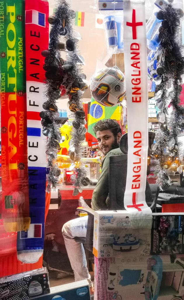 A man looks out from a souvenior store in Doha, Qatar, Nov. 18, 2022, ahead of the FIFA World Cup Qatar 2022. (Xinhua/Lan Hongguang)