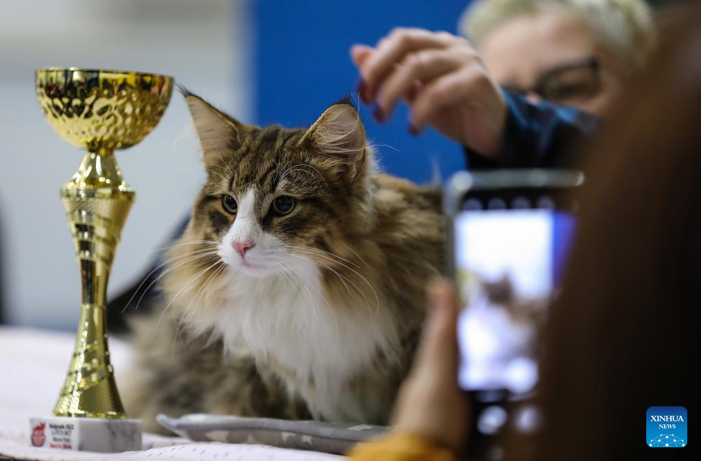 A cat is seen during a cat show in Zagreb, Croatia on Nov.19, 2022. (Jurica Galoic/PIXSELL via Xinhua)