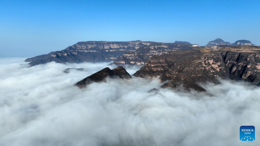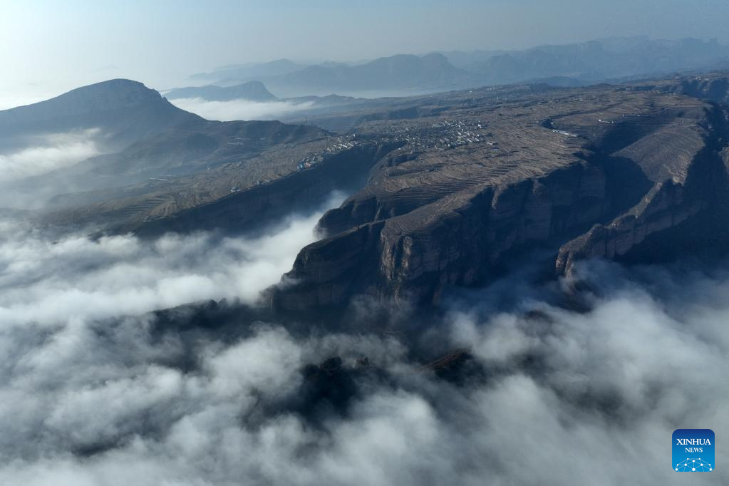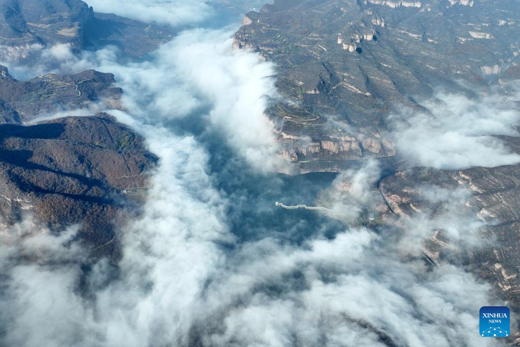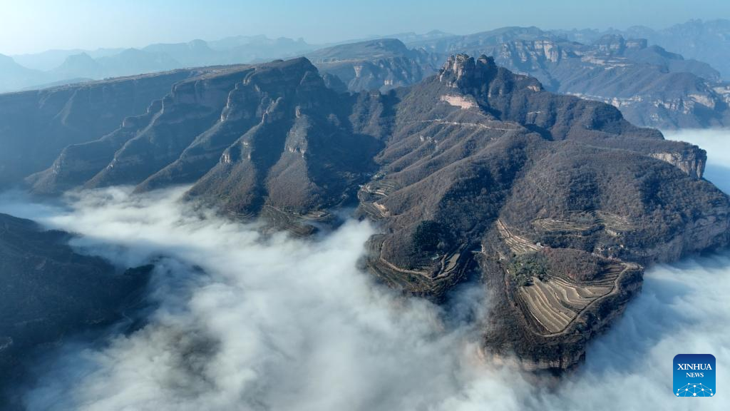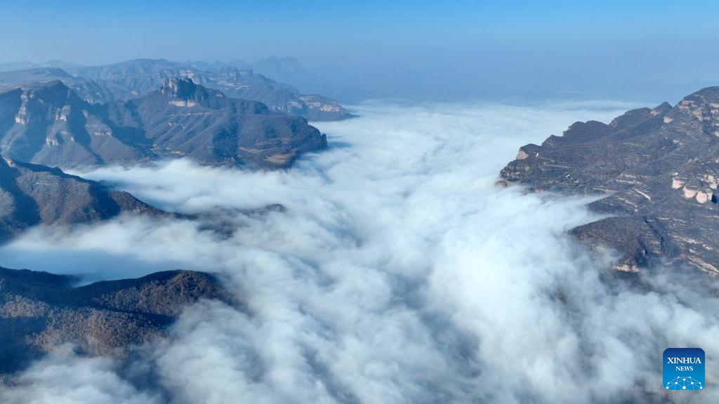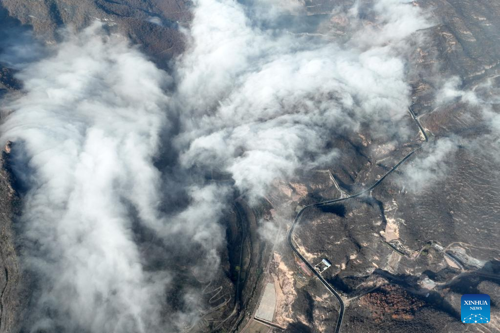 This aerial photo taken on Nov. 19, 2022 shows sea of clouds in Taihang Mountains in Liushigang Town of Shahe City, north China's Hebei Province. (Xinhua/Mu Yu)