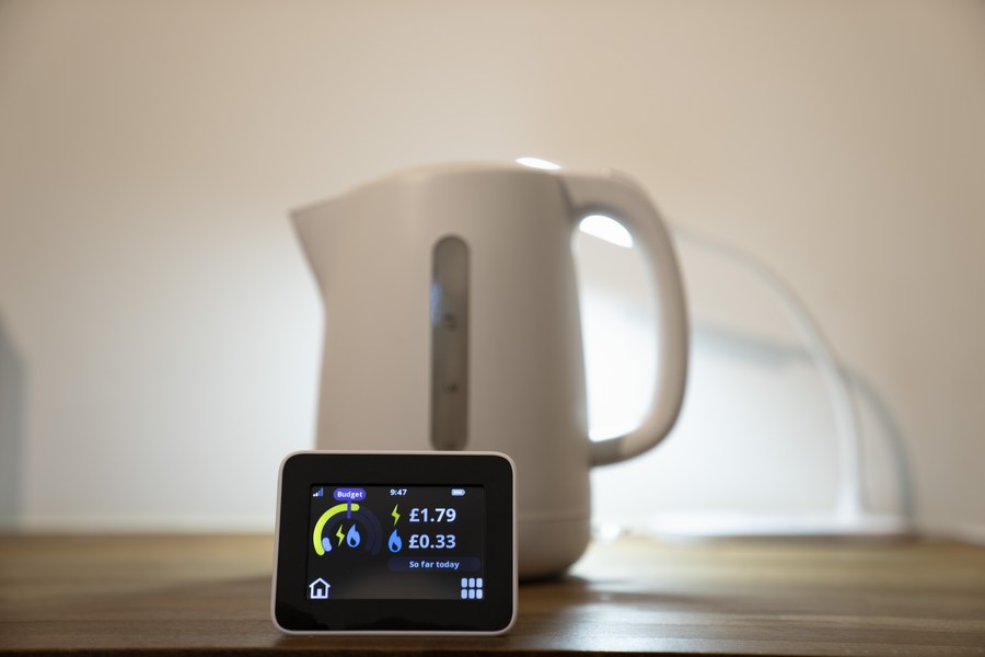 A smart energy meter is seen in a household in Manchester, Britain, Sept. 2, 2022. (Photo by Jon Super/Xinhua)