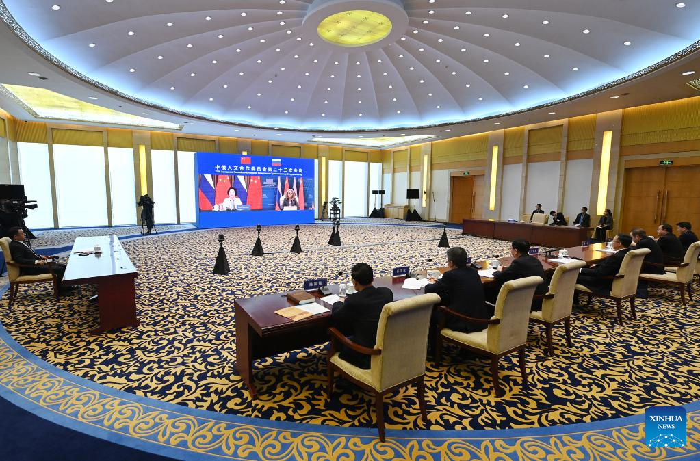 CHONGQING, Nov. 22 (Xinhua) -- Chinese Vice Premier Sun Chunlan and Russian Deputy Prime Minister Tatyana Golikova attended the 23rd session of the China-Russia Committee on Humanities Cooperation via video link on Tuesday, calling on the two sides to strengthen people-to-people exchanges.