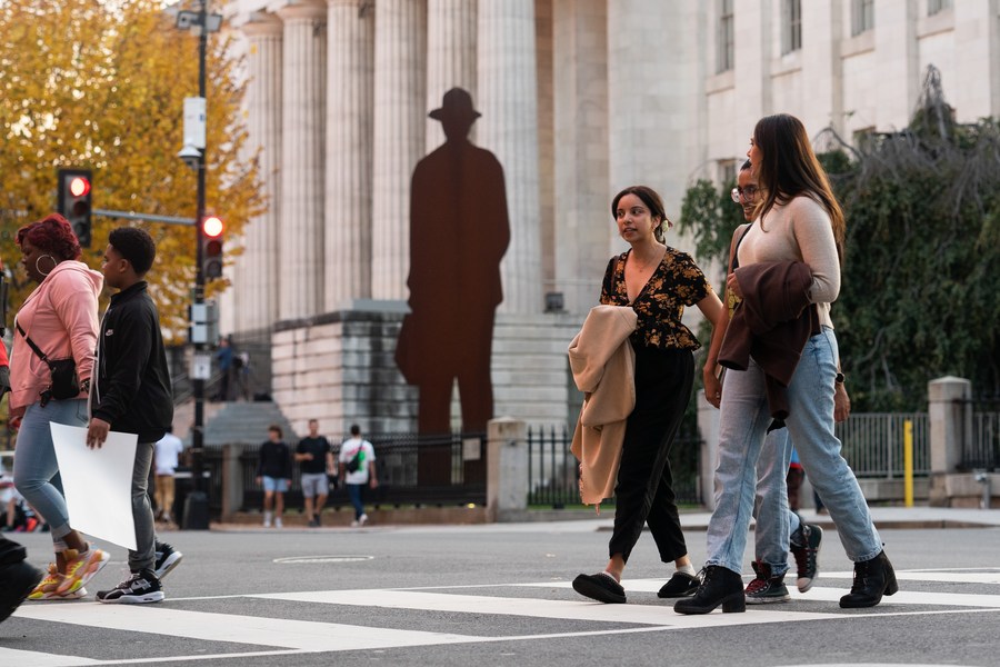 People walk across a street in Washington, D.C., the United States, Nov. 4, 2022. (Xinhua/Liu Jie)
