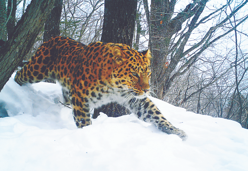 More than 20,000 monitoring terminals, including infrared cameras, have been set up inside the national park, capturing and then transmitting videos and images of wild Siberian tigers and Amur leopards over 30,000 times.